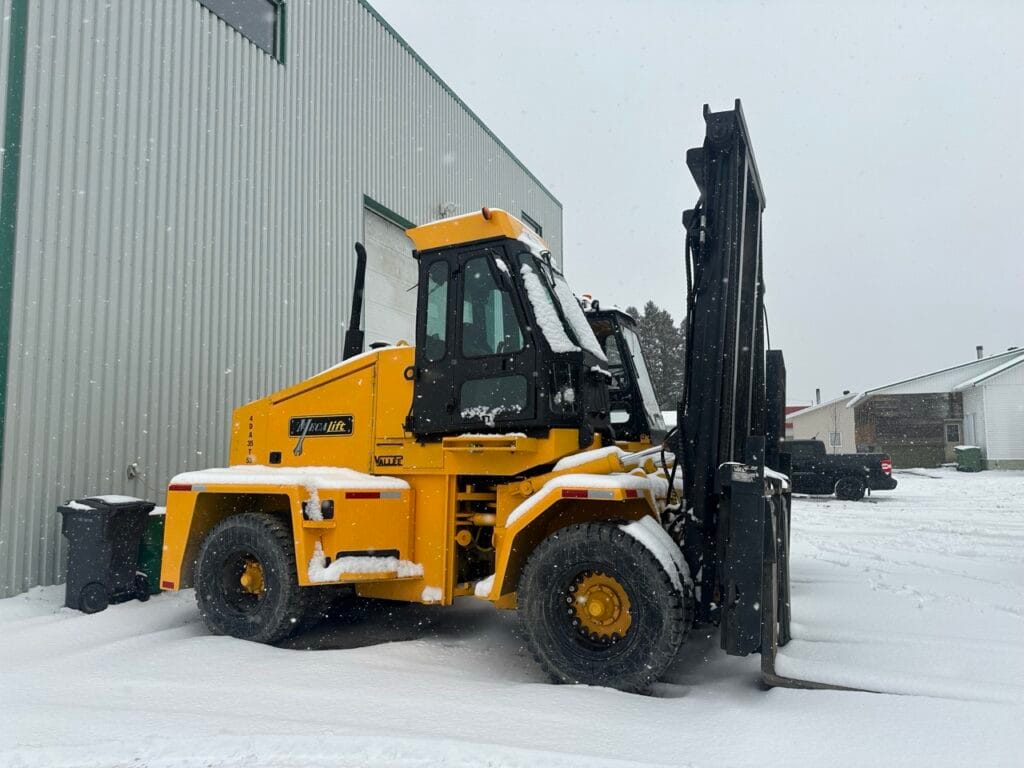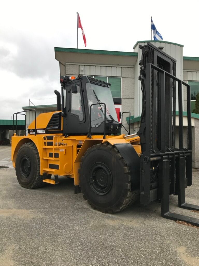The robustness and longevity of Vallée forklifts are the stuff of legend in the industry. Thanks to their four (4)-wheel drive, Vallée forklifts provide you with unparalleled performance on unpaved ground and sloped terrain. You can also make turns in narrower passageways than those required for traditional forklifts, thanks to the central articulation. What’s more, the design of the mast, combined with the design of the cab, will give you exceptional visibility from the end of the forks.